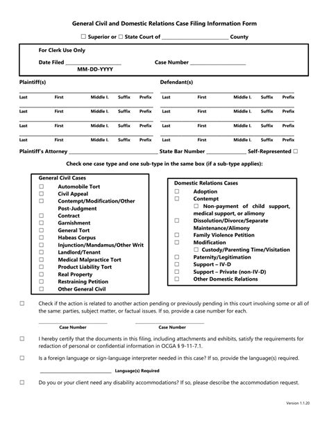 case filing information form georgia