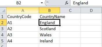 country code 2 letter excel