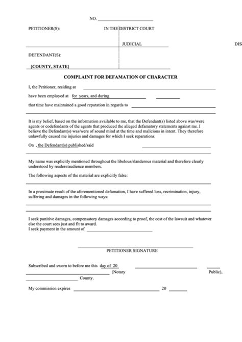 defamation suit template