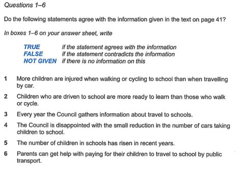ielts true false not given sample questions