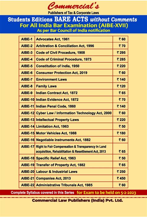 list of bare acts for aibe