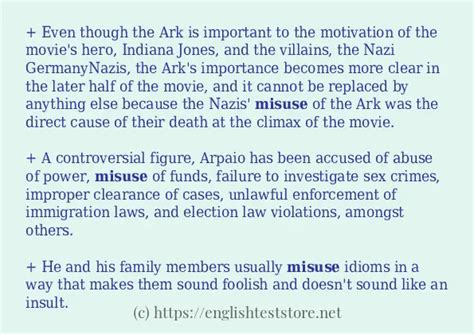 misuse examples sentences