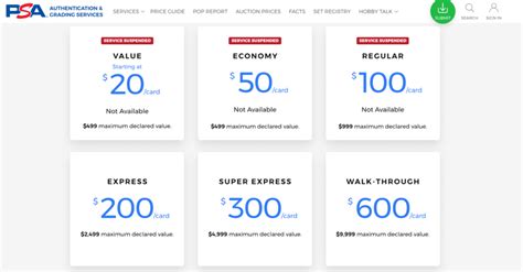 psa grading what is declared value
