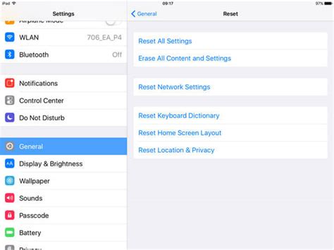 what does reset mean on ipad